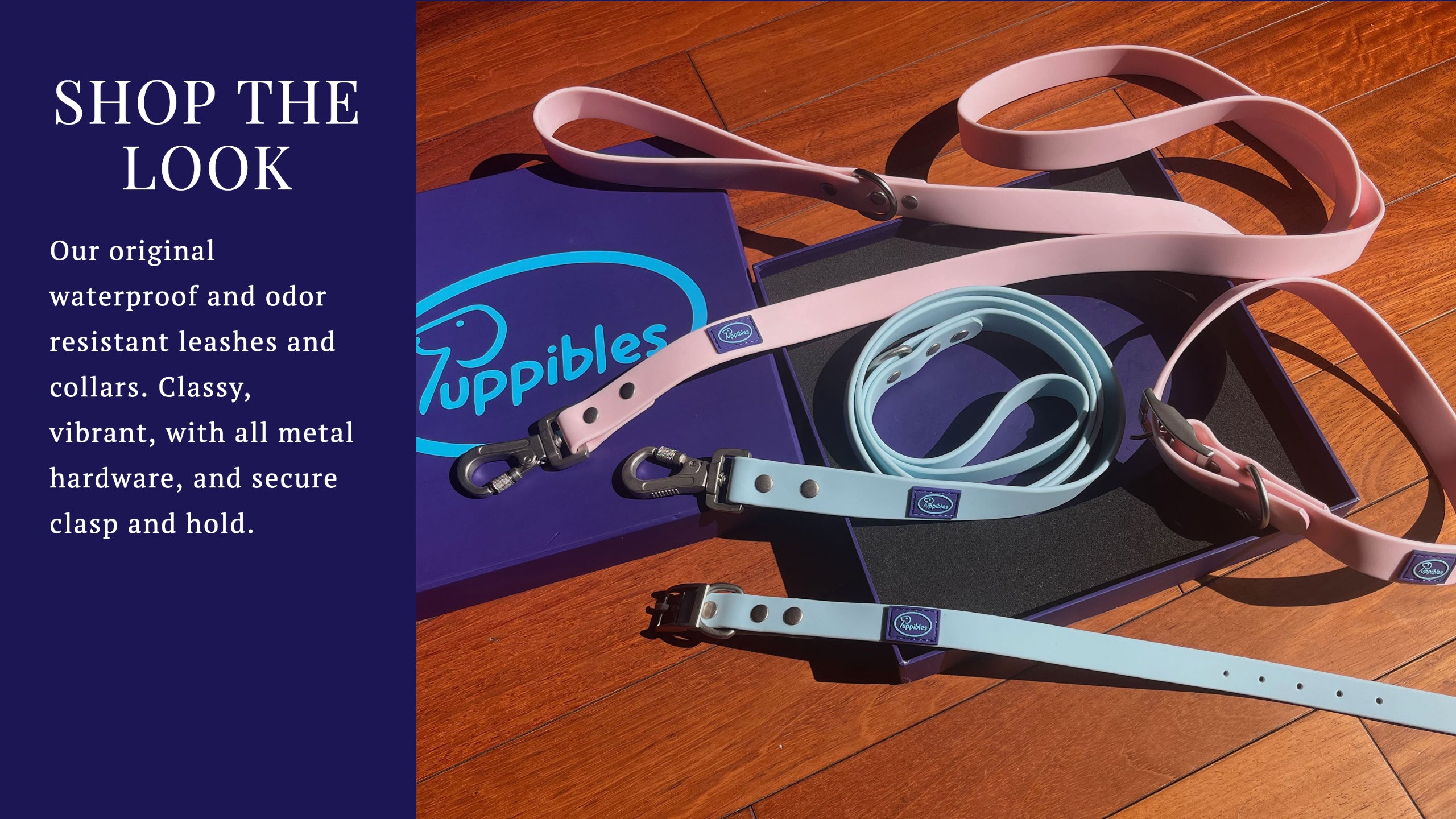 Puppibles leashes and collars look hip and classy. They sell very fast.